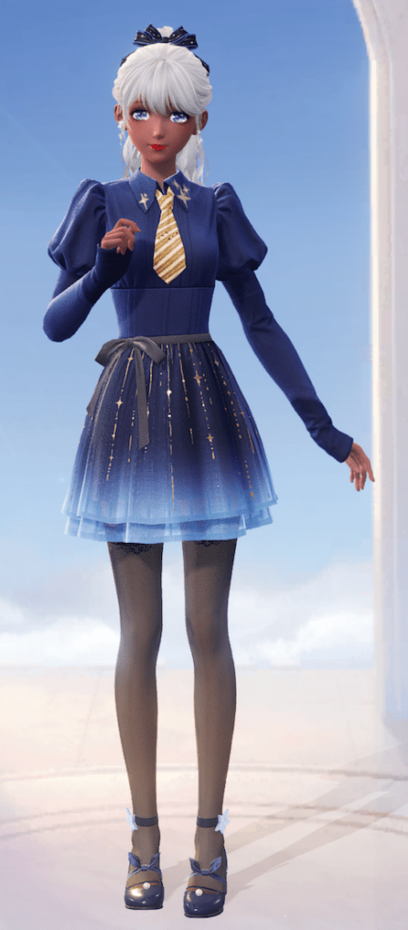 In order to make this outfit, I paired the wishful pact skirt with the distant memory hair, the boundless night top, midnight bloom socks and the graceful takeoff shoes.